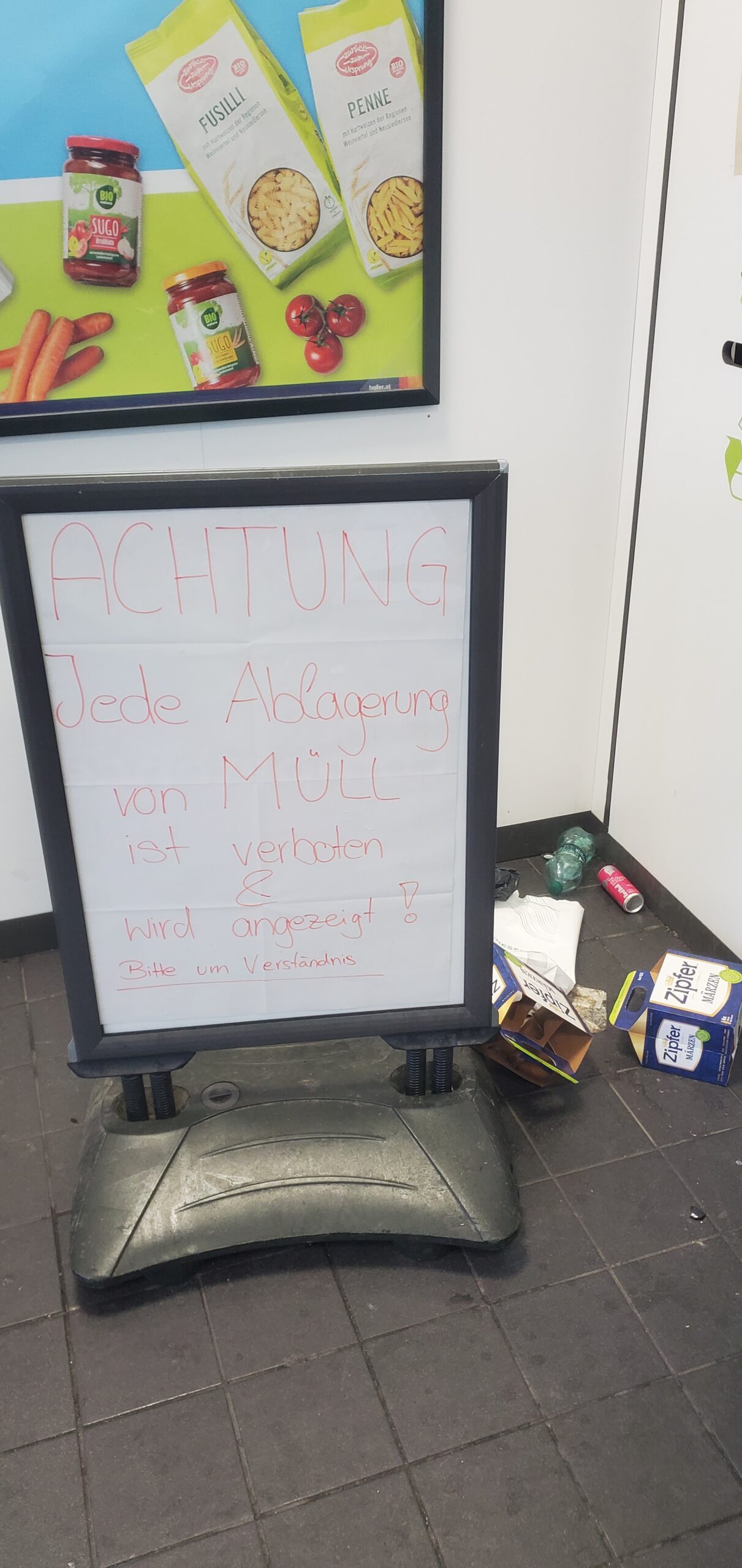 So gerät man in Gefahr, nicht unbedingt notwendige Anschaffungen zu tätigen: eine Butterbreze, zwei Capucchini, ein Mundwasser, vier Geschirrtücher, eine Zitrone und ein halbes Pfund Kaffee (bio und fair!).