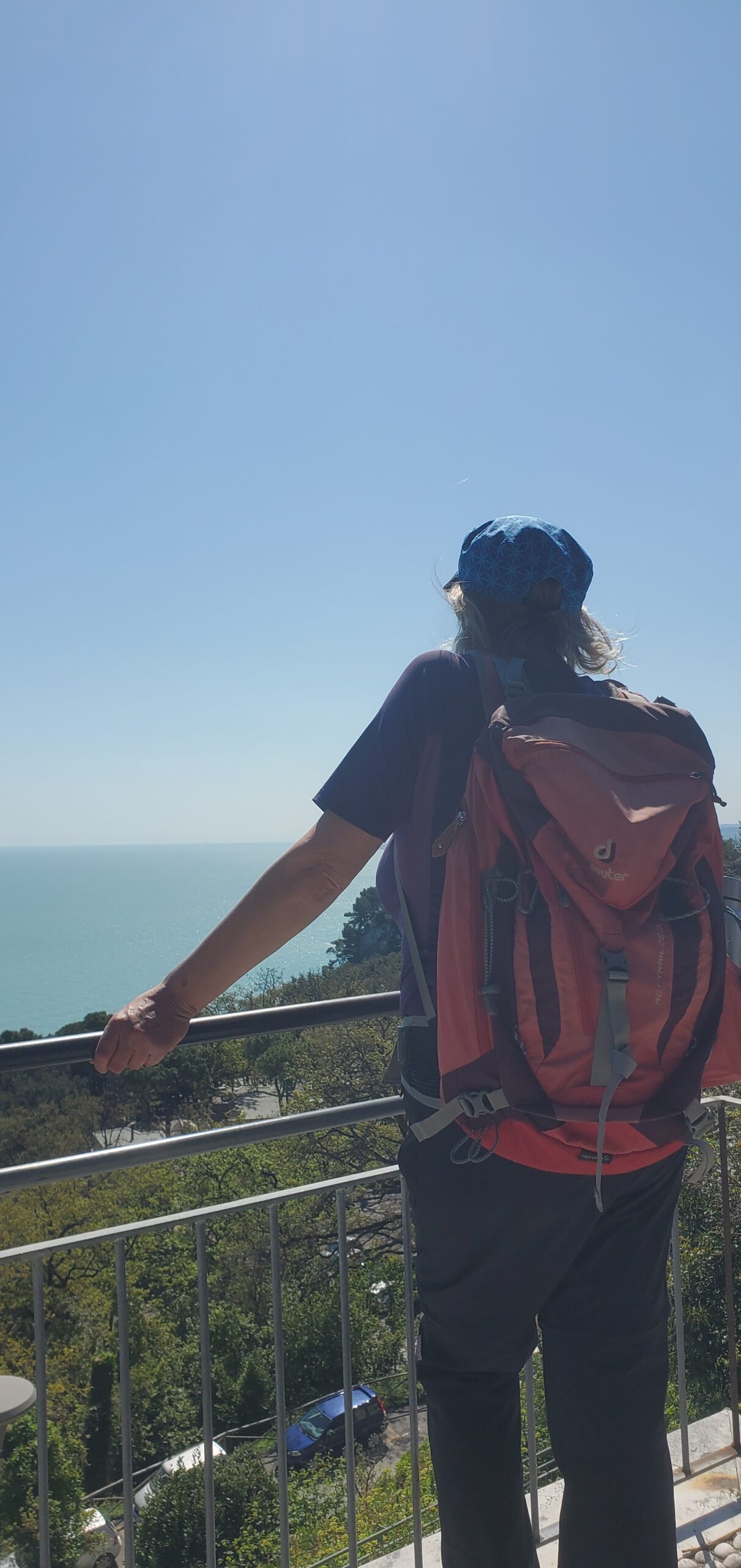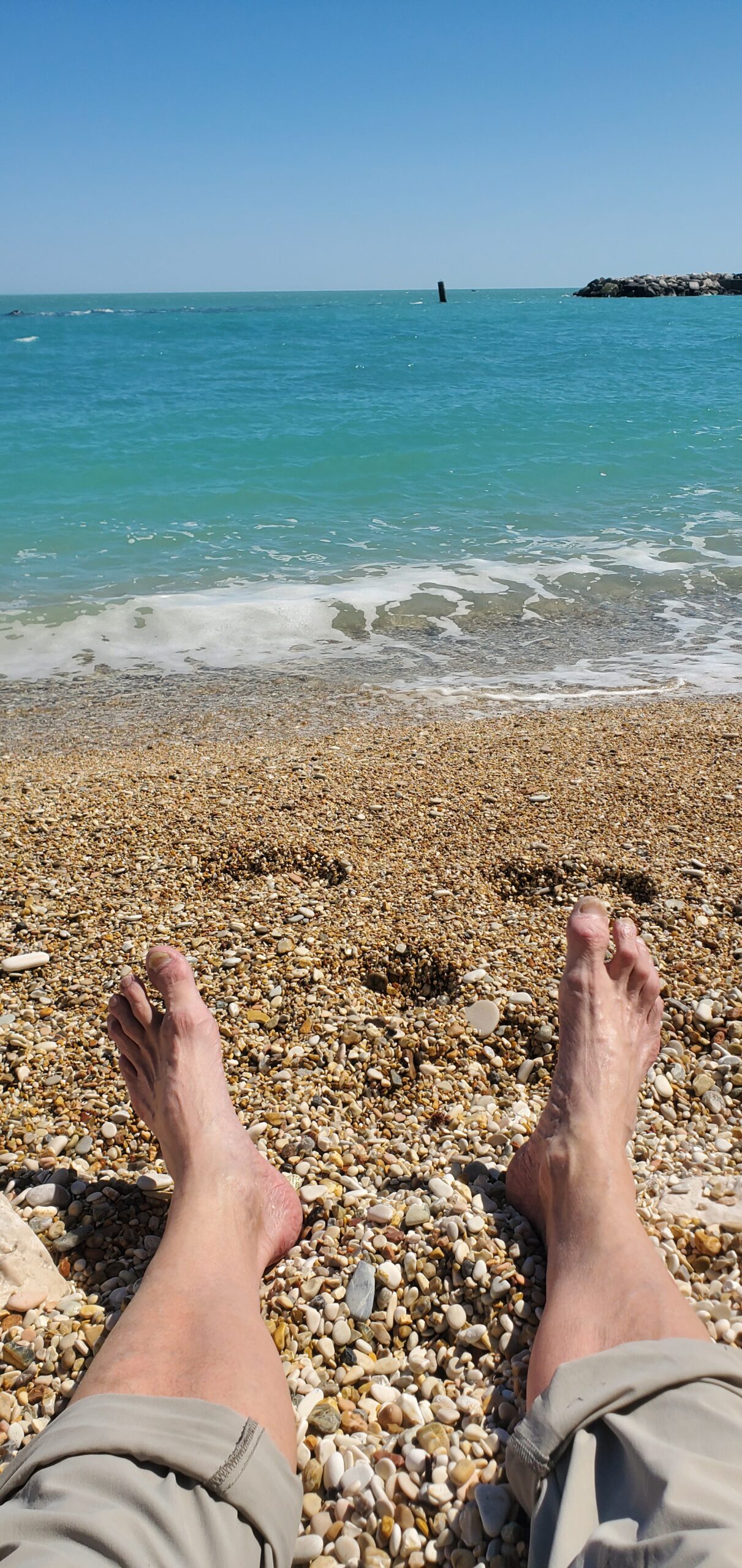 Der Strand hier ist sehr weit und wo gestern noch die Kite-Surfer unterwegs waren, ist es heute nur noch heiß. Wir radeln hinauf in die nahe gelegene Altstadt von Sirolo, essen Eis und klettern die 130 Höhenmeter zum anderen Strand hinunter, sitzen zwischen Felsen und Sand, bis wir uns vor einem Sonnenbrand fürchten und klettern wieder die Stufen hinauf. Auch das ist Sport!