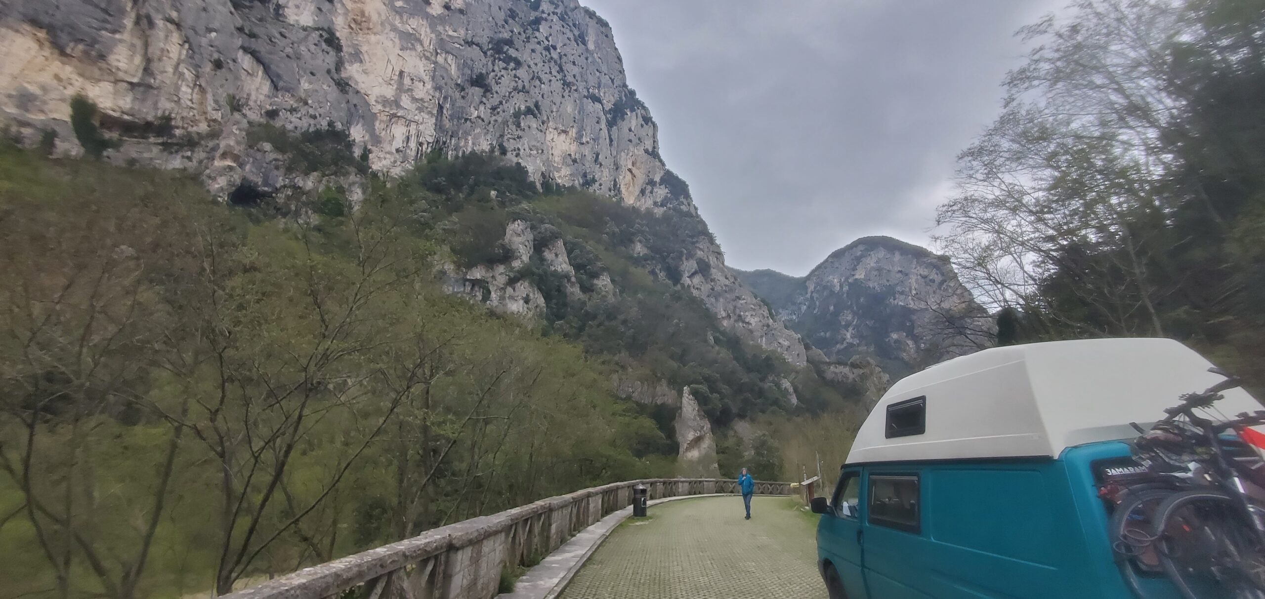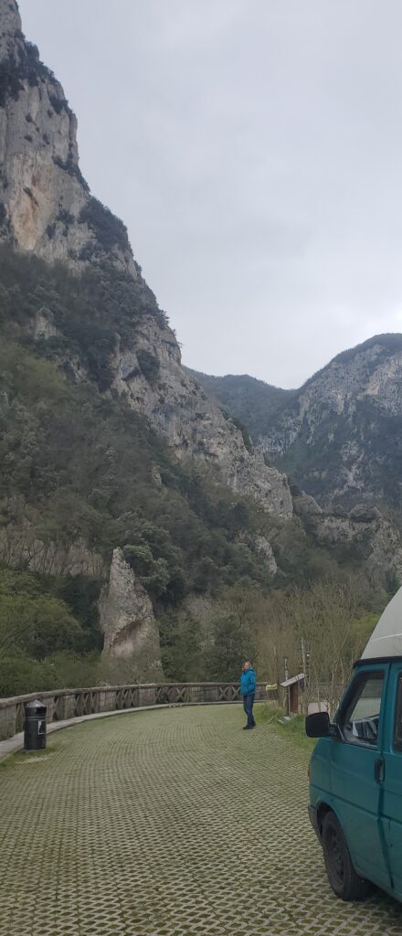 Die Schlucht Gola de Furlo ist beeindruckend: Fast senkrecht fahren die Felswände hinauf, unten fließt ungemütlich trübe Wasser. Einst führte durch diesen Pass die Via Flaminia, die wichtige Heeresstraße die Rom mit den nördlichen und östlichen Provinzen verband. Wir fahren durch einen kurzen Tunnel, den vor fast 2000 Jahren die Römer in den Feld schlugen.