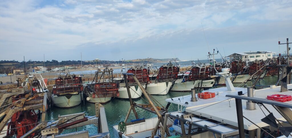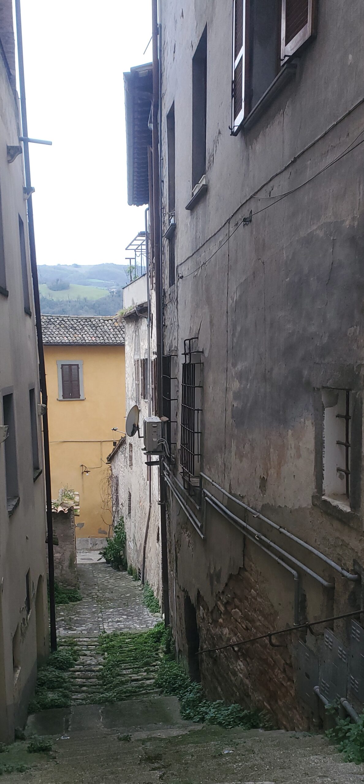Leider ist es immer noch kalt und sehr windig, Dass Örtchen Fossambrone etwas weiter östlich beeindruckt durch viele verlassene und herunter gekommene, einst wohl herrschaftliche Häuser. Mit Gefallen an besten die vielen Türklopfer. Leider finden wir nicht einmal ein Café oder eine Trattoria, wo man einen Cappuccino trinken könnte: alles zu.